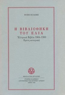 3. Πόπη Πολέμη, Η Βιβλιοθήκη του ΕΛΙΑ. Ελληνικά βιβλία 1864-1900. Πρώτη καταγραφή, Αθήνα, Βιβλιολογικό Εργαστήρι – Εταιρεία Ελληνικού Λογοτεχνικού και Ιστορικού Αρχείου [Βιβλιολογικό Εργαστήρι 5], 1990 (8ο, 506 σ.)